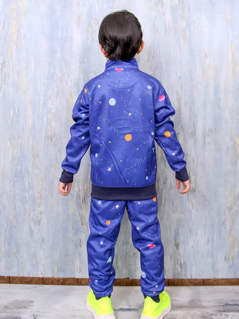 Blast off into style! This space-themed tracksuit is perfect for little adventurers ready to explore the galaxy in comfort and flair.